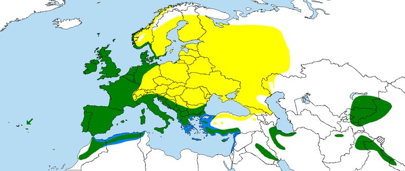 На нашим подручјима је углавном станарица, тј. задржава се током читаве године. Ова врста је једна од најважнијих пернатих ловних дивљачи у Европи, са годишњим одстрелом од више милиона јединки [3].