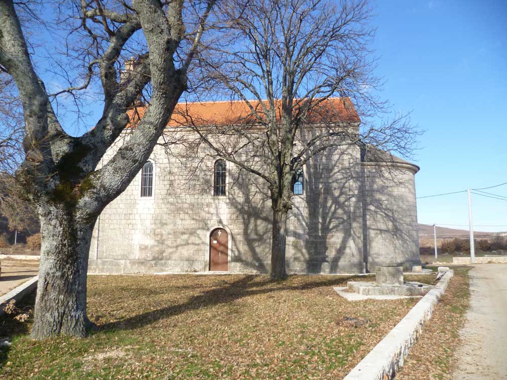 Црква је првобитно подигнута 1784. године заслугом крчког архимандрита Никанора Богуновића. На темељима старе цркве 1889. године саграђена је нова, у време епископа Никодима Милаша Милојко Будимир „Преглед и стање црквених објеката на подручју Далматинске епархије“, Братство XX, Београд 2016. Иконостас, из средине XIX века, био је једна од највреднијих уметничких целина храма, али су све старије иконе нестале током последњих ратних дешавања.