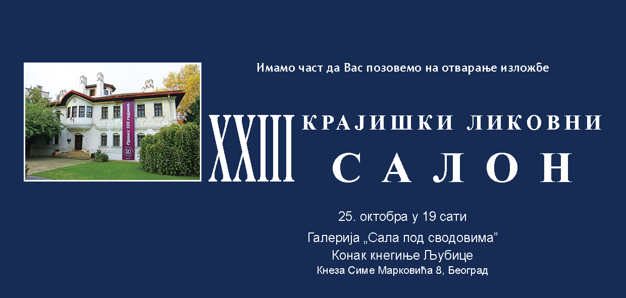 Позивамо све заинтересоване да у среду 15. октобра у 19:00 часова у Конаку кнегиње Љубице - Београд, присуствују отварању тридесет и трећег по реду Крајишког ликовног салона